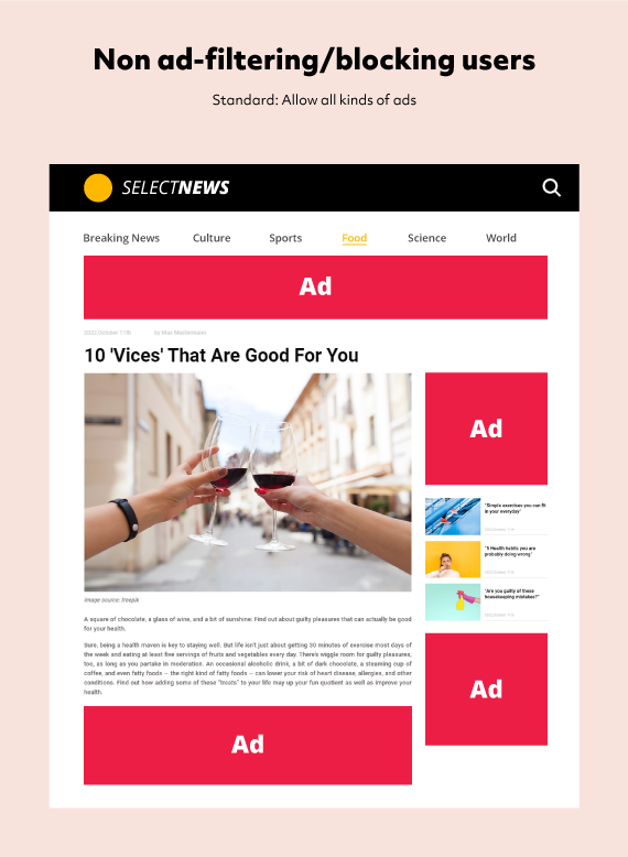 The Acceptable Ads Committee is a non-profit organization that was established in 2017 to define the Standard for what constitutes an “acceptable ad”. The Committee comprises various stakeholder representatives, including users, publishers, advertisers, ad tech companies, and digital rights organizations. We conduct independent user research and solicit feedback from industry stakeholders in maintaining and updating the Acceptable Ads Standard. More information about our structure and mandate can be found on the AAC website.